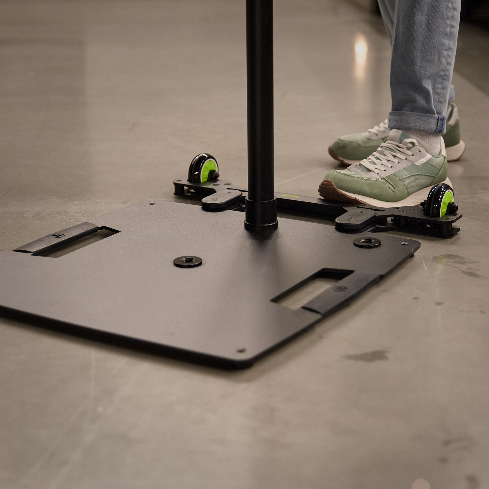 Gravity® LA WI 1 je idealna rešitev za prenosljivo in prilagodljivo uporabo stojal Gravity® s kvadratno osnovno ploščo (LS 431 B, LS 431 W, LS 331 B). Omogoča enostavno premikanje brez razstavljanja.