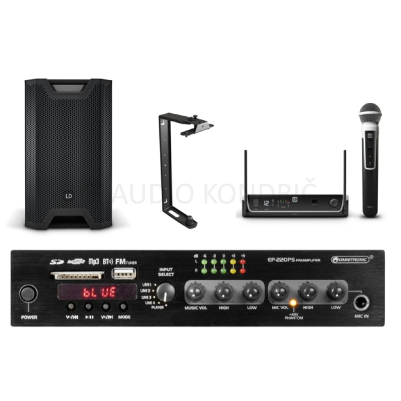 - Enostavna uporaba: Mešalni ojačevalnik in brezžični mikrofon omogočata preprosto upravljanje in prilagodljivost.