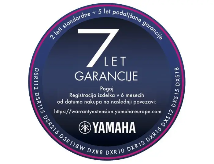- GARANCIJA 7 LET povezava za podaljšanje garancije: europe.yamaha.com/en/support/warranty/.