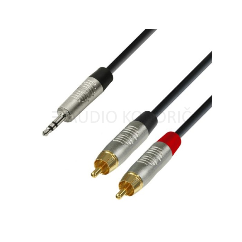 Audio cable equipped with a 3.5 mm stereo TRS plug and two gold-plated cinch / RCA plugs for optimum transmission. Connects modern signal sources such as MP3 players to the DJ or live mixing desk without additional adapters.