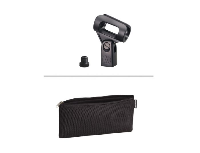 | ACCESSORIES FURNISHED | AT8470 Quiet-Flex™ stand clamp for 5/8″-27 threaded stands; 5/8″-27 to 3/8″-16 threaded adapter; soft protective pouch |