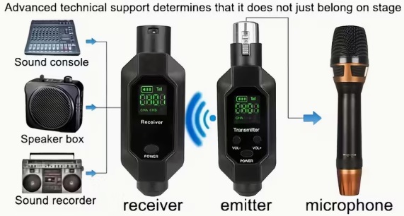 Tako lahko na primer aktivni zvočnik in mešalno mizo brezžično povežemo brez potrebe po kablih ali omejitvi gibanja, kar omogoča večjo fleksibilnost pri postavitvi avdiosistema in hitrejšo prilagoditev zvoka na različnih območjih.