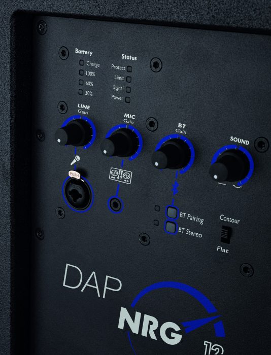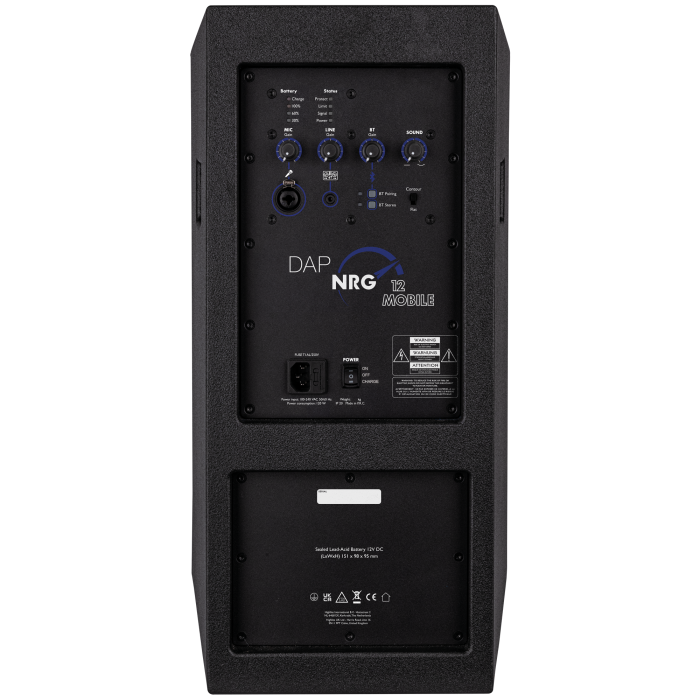 DAP NRG-12 Mobile je prenosni zvočnik kvalitetnega  z integrirano baterijo in Bluetooth 5.0 povezavo. Ponuja maksimalno moč 200 Watov. S standardno 12V baterijo (naprodaj ločeno) zdrži NRG-12 Mobile predvajanje pri povprečni glasnosti približno 20 ur, kar je dovolj za vsako zabavo.