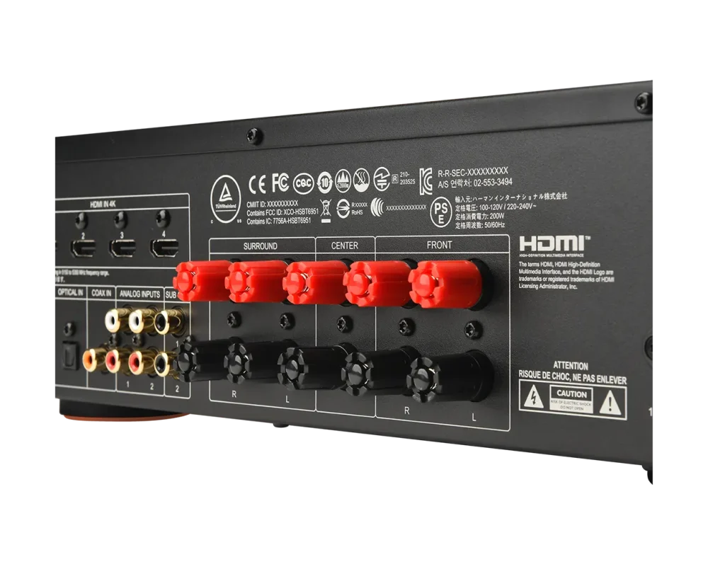 - HDMI povezave: Vključuje več HDMI vhodov za povezavo različnih naprav, kot so pametni televizorji, igralne konzole in pretočne naprave.