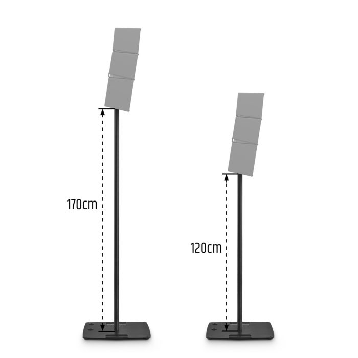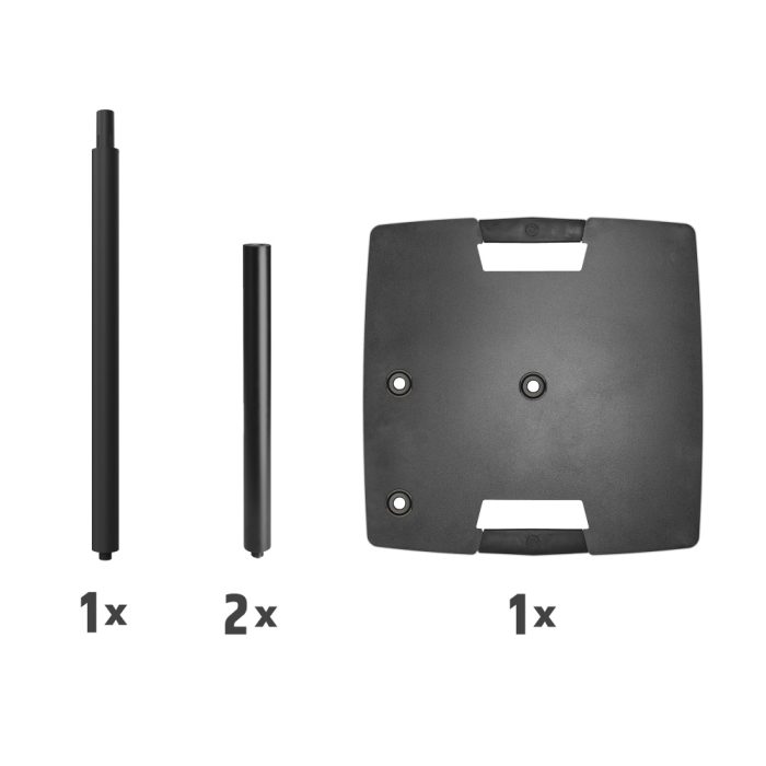 Loudspeaker stand consists of: 1 x Speaker pole for MAILA SPA (LDMAILADB), 2 x Pole Extension 50 cm (LDMAILADBEXT), 1 x Square heavy steel base (GTWB431B).