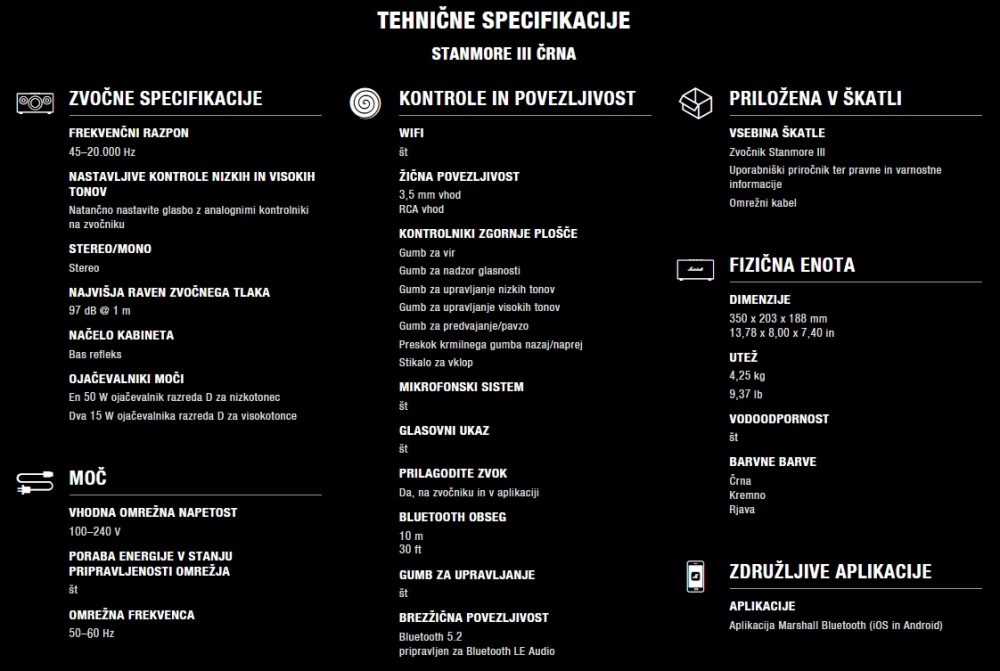 • Zvok lahko prilagodite z aplikacijo Marshall Bluetooth App.