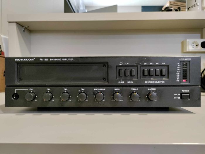 Monacor PA-1220 ojačevalnik 4 zone – 200W / 100V, rabljen