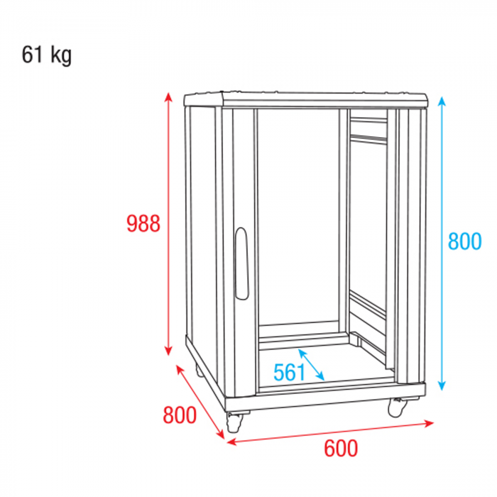 The Showgear RCA-FSG-18 is a lockable 19″ network cabinet with an 18 rack unit height (800 mm). It comes with both swivel wheels and rubber feet. You can choose between both options, making it suitable for both mobile and fixed applications.