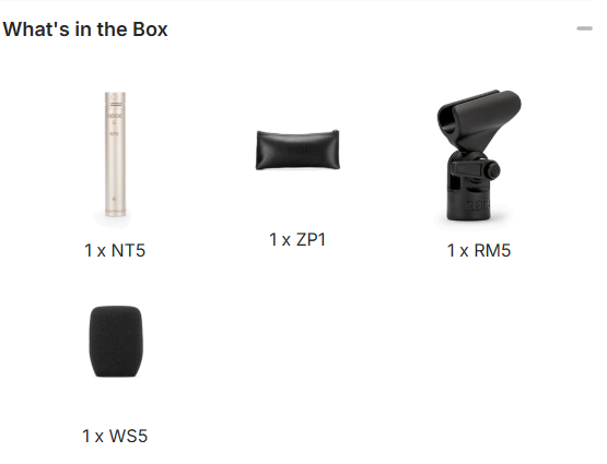 Njegov izjemno natančen kardioidni polarni vzorec in širok frekvenčni odziv delata NT5 idealnega za snemanje vsega, od akustičnih instrumentov do nadgradnje bobnov in činel, ter za žive nastope in dialoge na terenu.