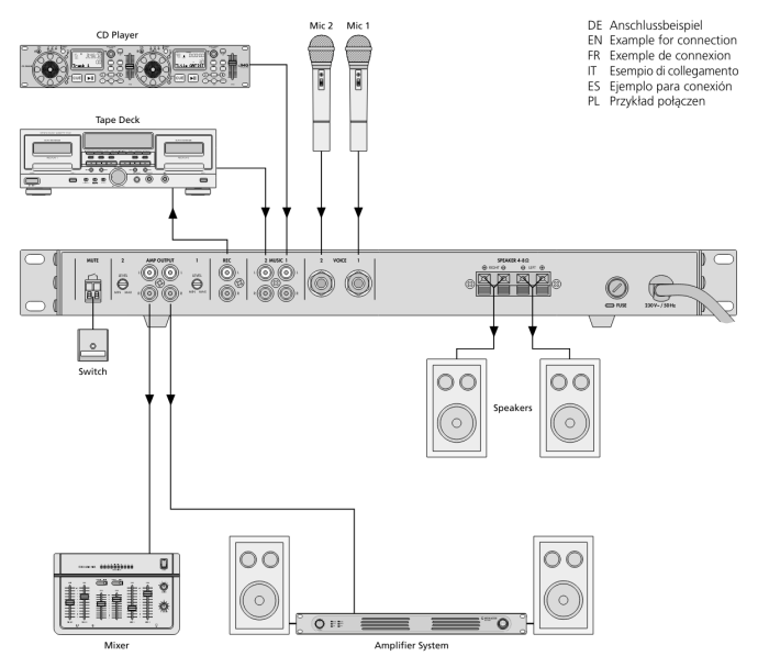 Koncept delovanja, ki je enostaven za uporabo in jasno urejene funkcije. Dva stereo linijska vira in dva mono mikrofonska vira se lahko brez težav mešata skupaj. Vsak vhodni kanal ima nadzor tona.