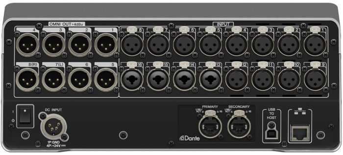 - Local I/O: 16 Mic/Line (12 XLR + 4 XLR/TRS Phones Combo) inputs, and 8 (XLR) outputs